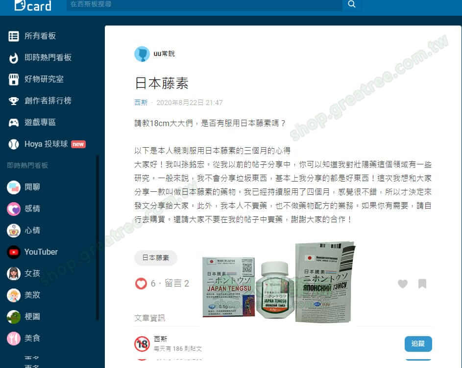 日本藤素是一種保養類的壯陽藥品,據說可以幫助民眾治療陽痿、早洩以及增大陰莖等功效。對於是否有人吃過日本藤素,這是一個很常見的問題。如果你想要找到答案,可以去日本藤素官方藥局(https://gearttrree.com)上查找相關日本藤素資訊。在那裡,藥師有詳...