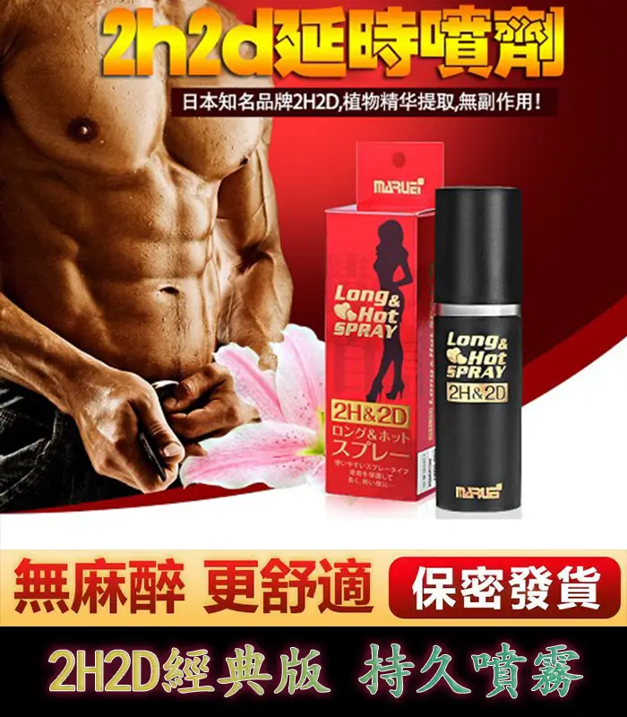 2H2D 經典版持久液 是由日本著名的天然草本健康品牌丸榮集團研發團隊精心打造的一款高效延時產品,旨在響應現代男性不斷升級的品質生活及高端健康需求。這款持久液集合了眾多獨特優勢,重新定義了延時噴劑的高端標準,為現代精英男士帶來極致的快感體驗,並迅速受到亞洲及全球男性的熱烈追捧。