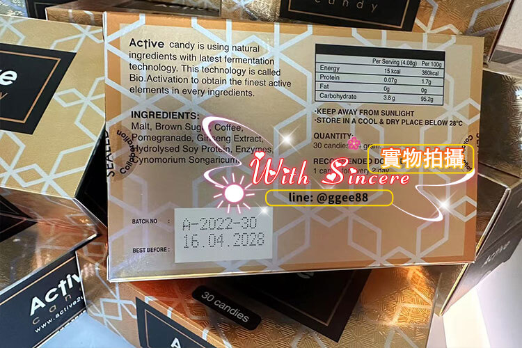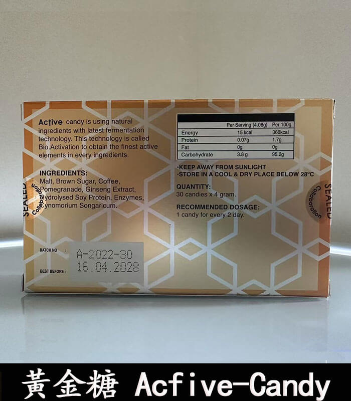 汗馬糖 Acfive-Candy 黃金糖 由馬來西亞原廠精心研製最新精力糖,承襲品牌二十多年精力保健的配方精髓,並全面升級成 第七代最新版本。