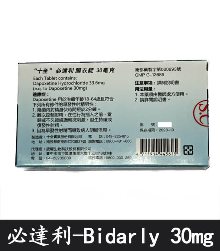 必達利 Bidarly 30mg 作為合法處方藥,應在醫師指導下使用。若有長期性生活不協調、早洩心理壓力,建議搭配性諮商或認知行為療法進行綜合治療,才能真正有效改善性生活品質。