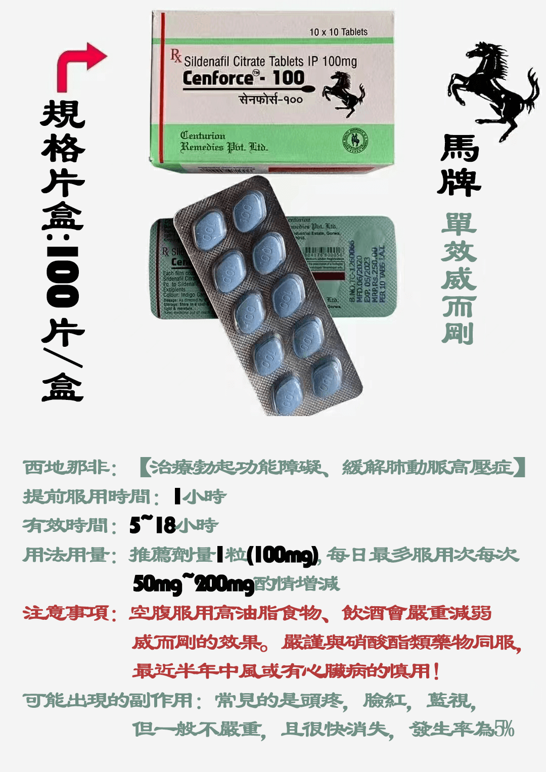 商品名稱:Cenforce-100 馬牌威而鋼(藍)、Cenforce-200 馬牌威而鋼(黑)