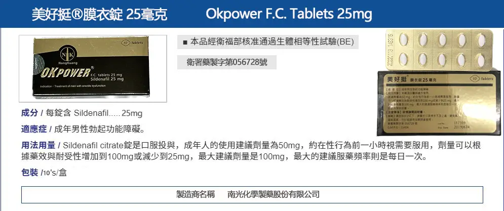 美好挺 OKPOWER 25mg 膜衣錠|輕劑量 Sildenafil 10顆裝