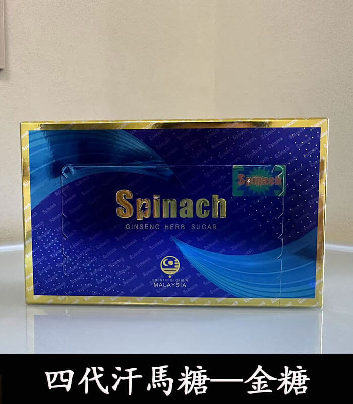 汗馬糖 Spinach 金糖是汗馬品牌第4代強效配方,專為現代男性設計的草本精力補給食品。嚴選鎖陽、人參、紫瑪咖、石榴多酚等天然植物,結合ALS實驗室認證的科學製程,實現「補腎壯陽 × 提升活力 × 無副作用」的三重功效。