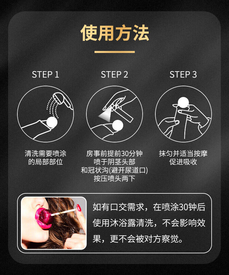 使用時間:建議於性行為前30分鐘噴塗