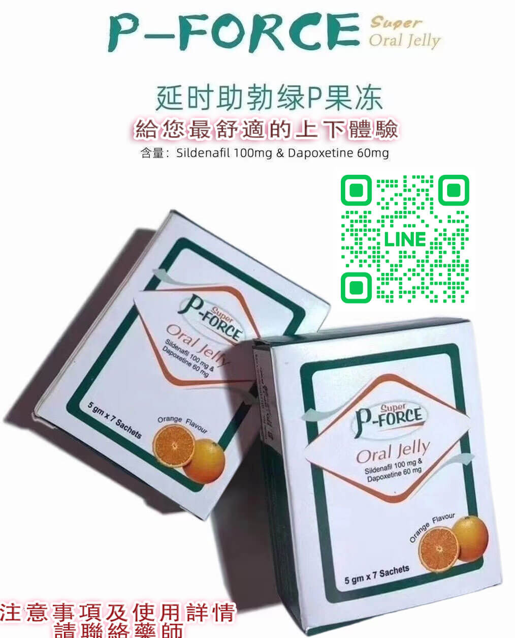 果凍威而鋼P-Force Oral Jelly 具有與威而鋼片劑相同的成分和性質。由於其果凍形式,果凍吸收更快,使用後20-30分鐘起效,效果持續4-6小時。